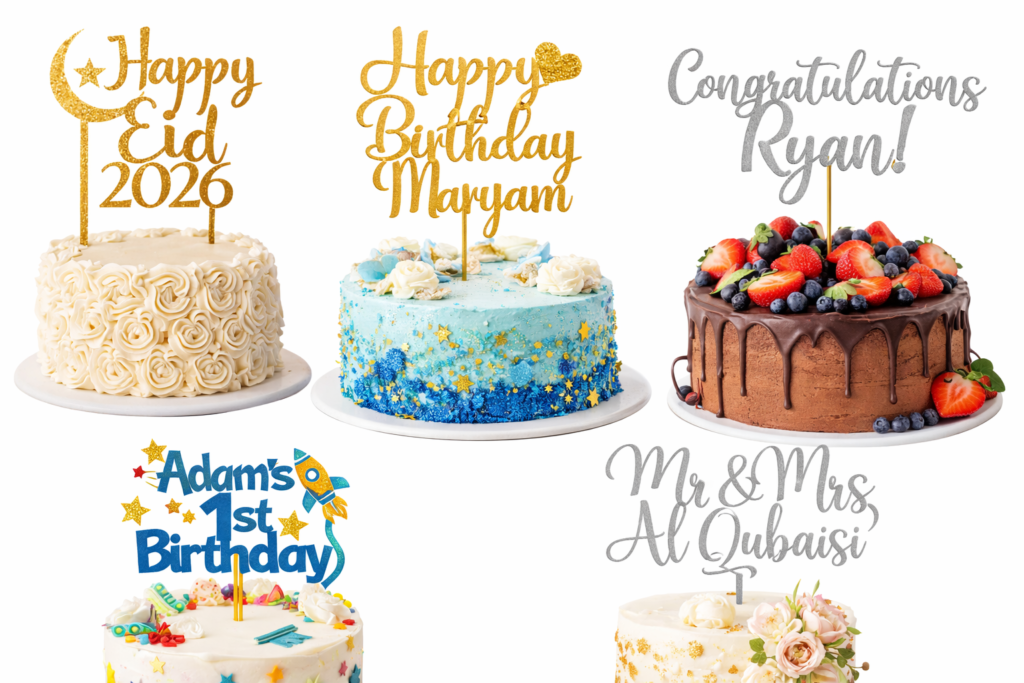 Dubai celebrates everything with ambition. Birthdays, baby showers, gender reveals, anniversaries, graduations, Eid milestones, corporate events – the cake is always part of the story. And the topper is always the first thing anyone photographs.