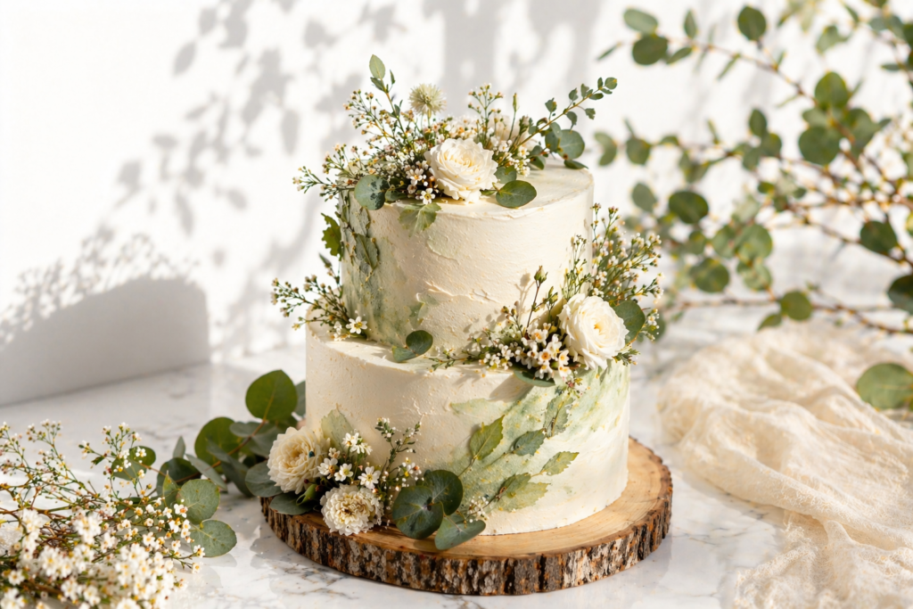 Nature theme wedding cakes have been a dominant direction in UAE celebration design for several years, and they are not slowing down — partly because the aesthetic is so genuinely flexible. “Nature theme” can mean botanical water colour pressed onto fondant, a cascade of garden flowers falling across three tiers, a textured bark and moss effect that looks like a forest floor, a coastal shell-and-sand palette for a beach wedding, or a warm terracotta-and-dried-flower approach for an evening desert reception.